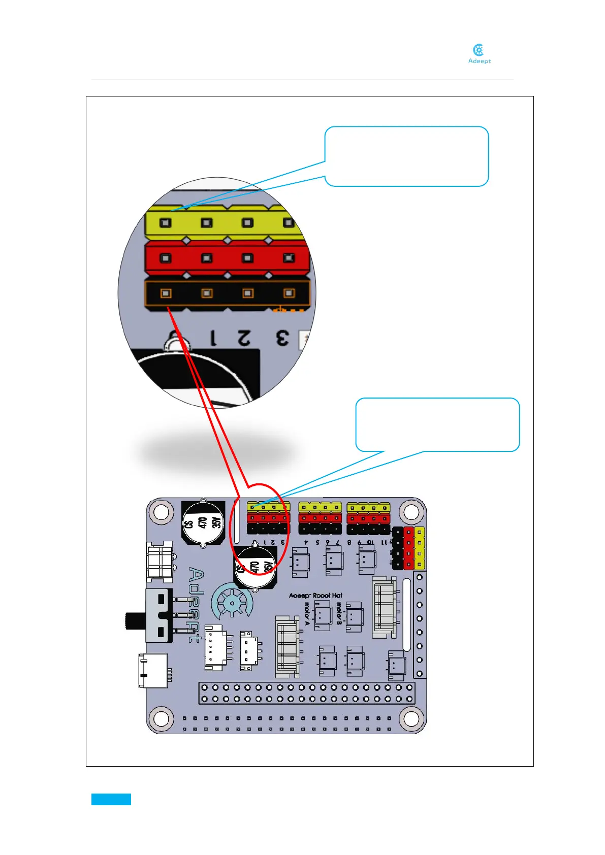 6. Connect servos to Adeept Motor HAT.