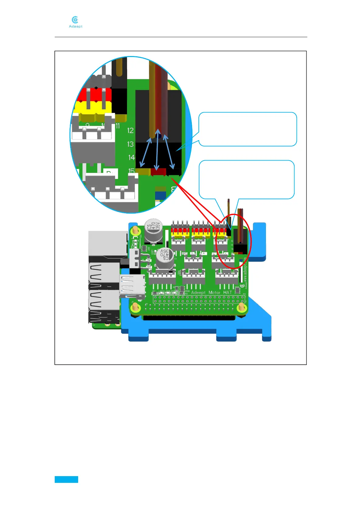6. Connect five servos to Adeept Motor HAT.
