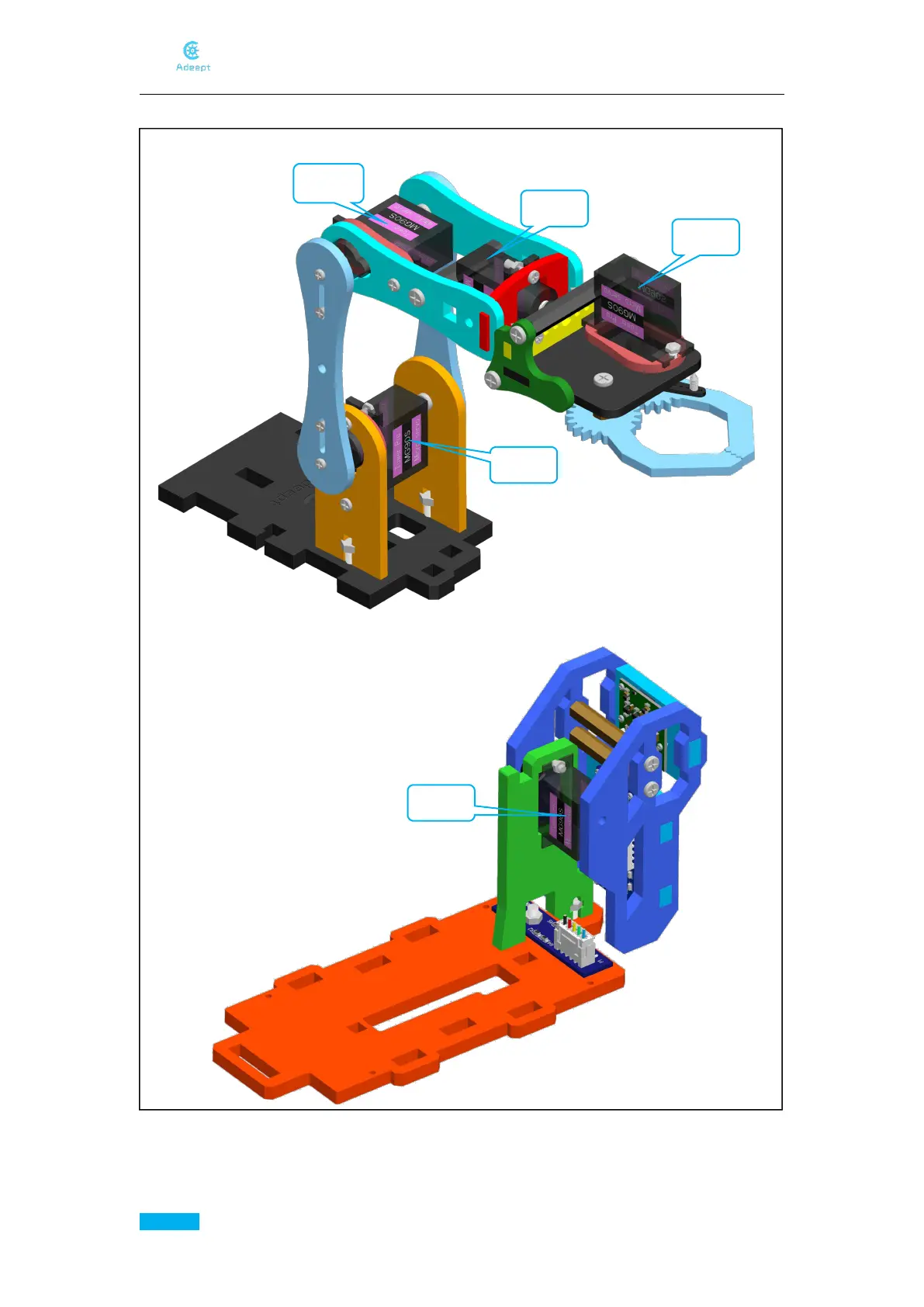 Connect the servo and the GA12-N20 Gear Motor to the corresponding port numbers of Adeept