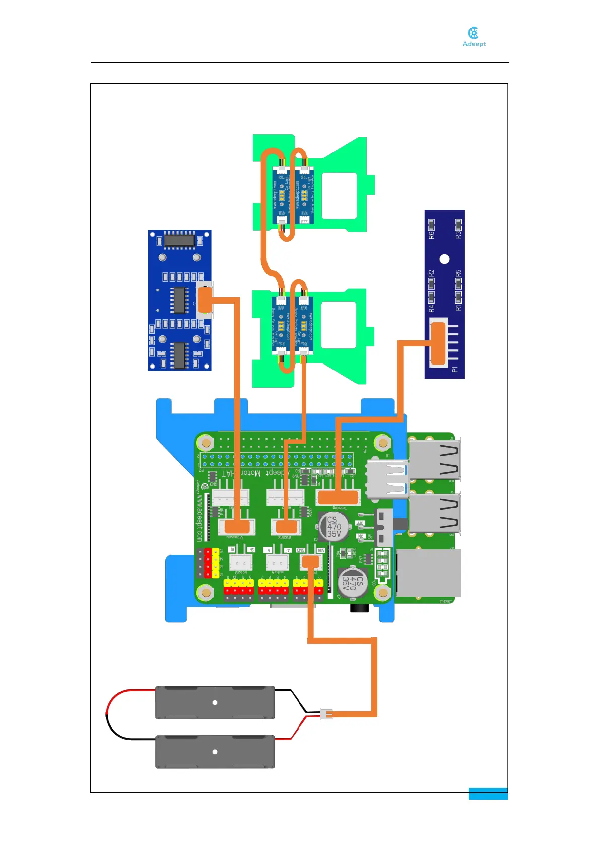 Connect the Adeept Ultrasonic Module, Car Light, 3 Tracking Module and 18650 Battery