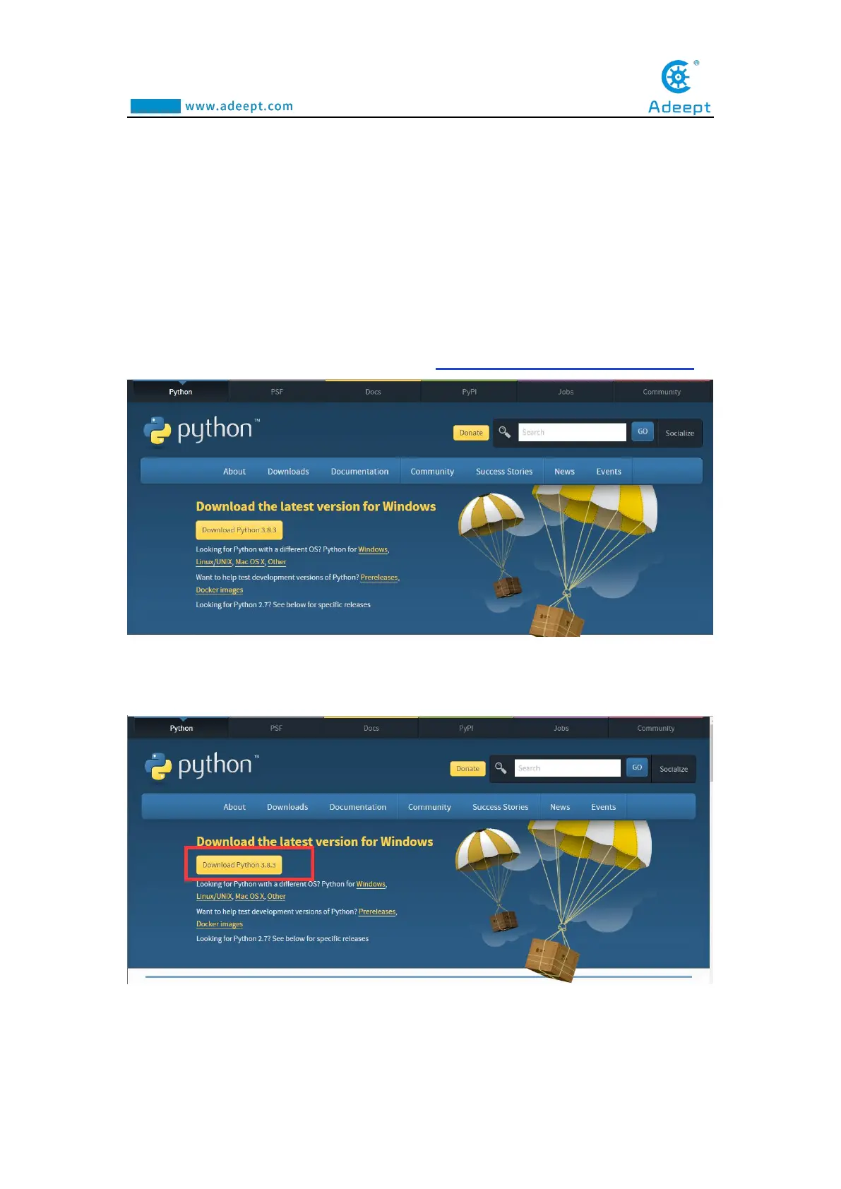 (2) Click the "Download Python 3.8.3" button to download and wait for the download