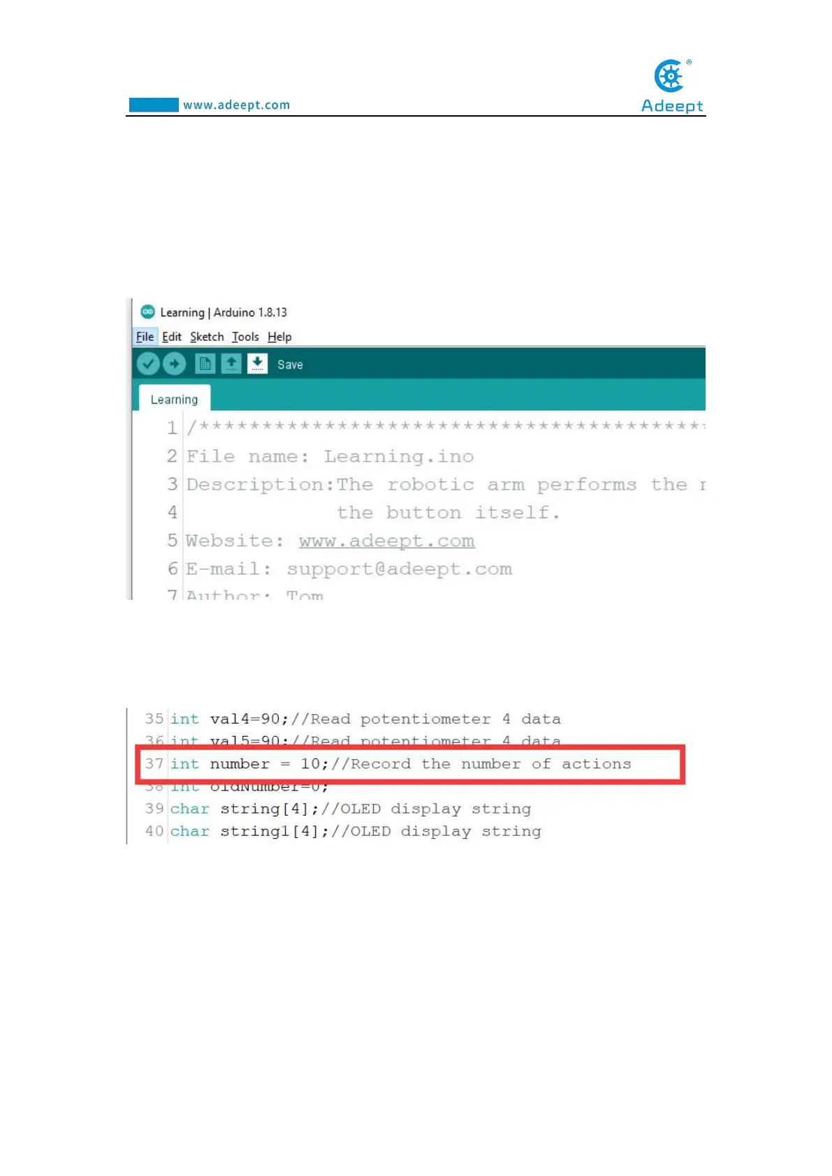 2.Find the 37th line of code, where "number = 10" means that the robotic arm can