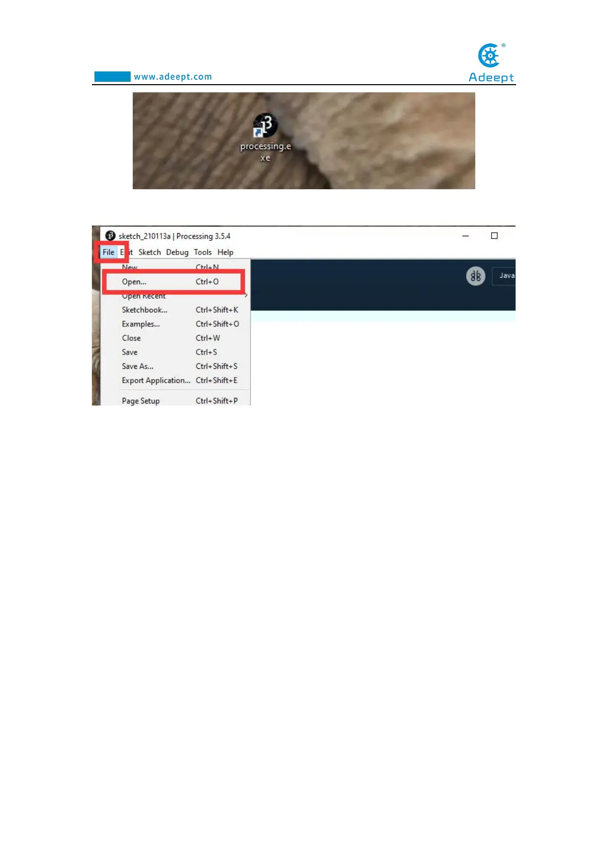 2. Click Open in the File drop-down menu::