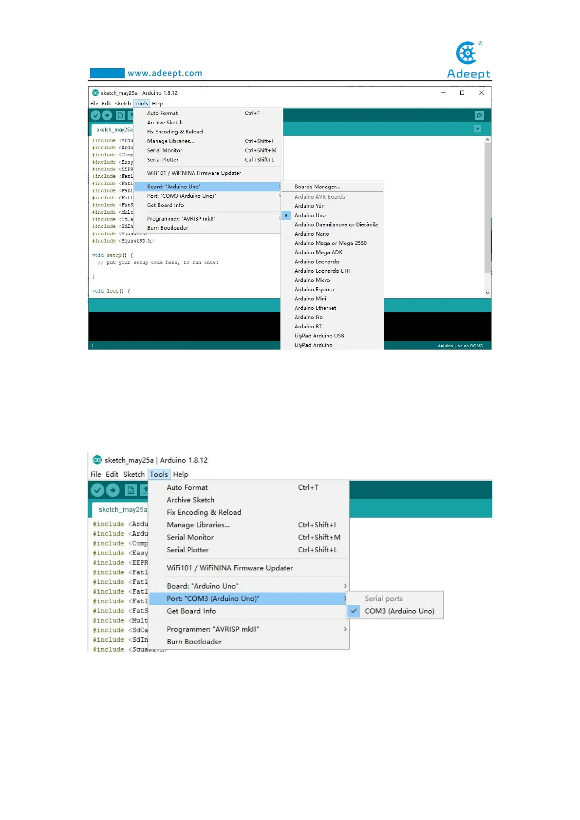 Port can set the port used by Arduino IDE to download the program, that is, the