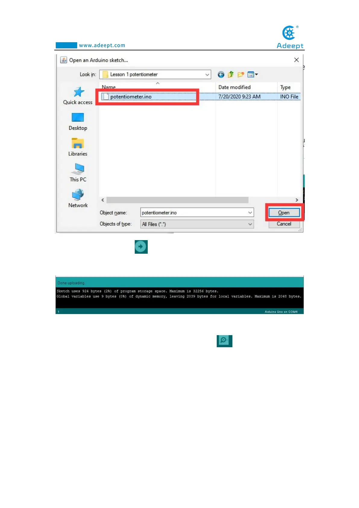 potentiometer by opening the serial monitor and click , as shown in the figure