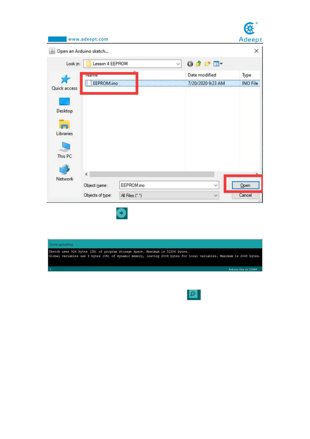 6.After opening, click to upload the code program to the Arduino UNO. If