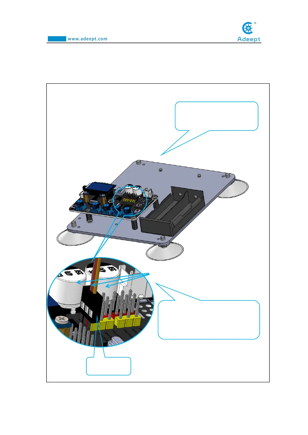 Connect five servos to the Adeept Arm Drive Board.