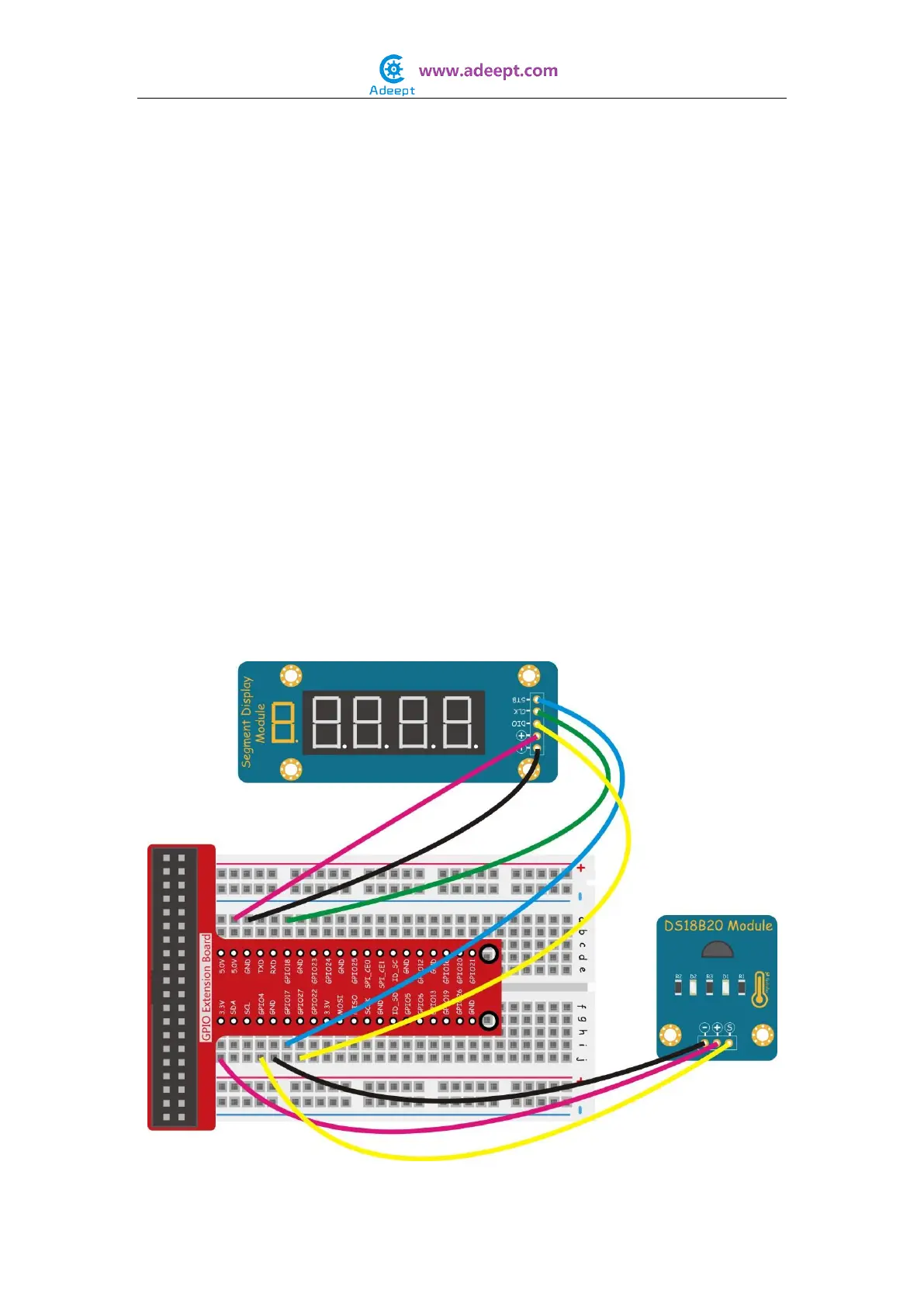 In this experiment, we program the Raspberry Pi to read DS18b20 temperature sensor,