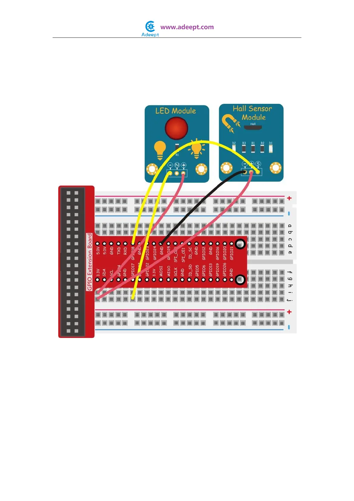 pin 11 of the Raspberry Pi and then toggle the LED based on the output signal of the hall