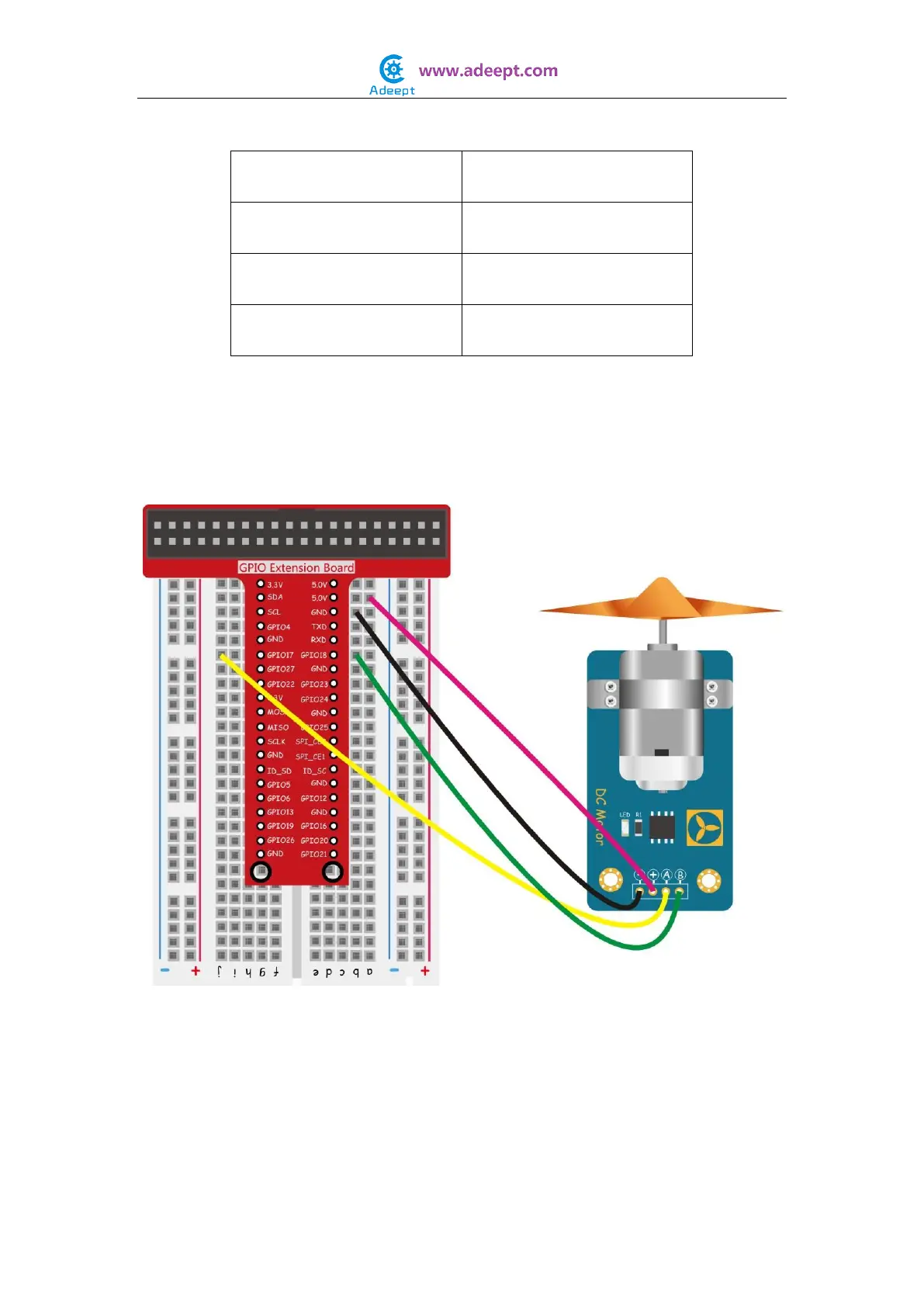 This experiment is to control the status of the DC motor via the Raspberry Pi. The statuses