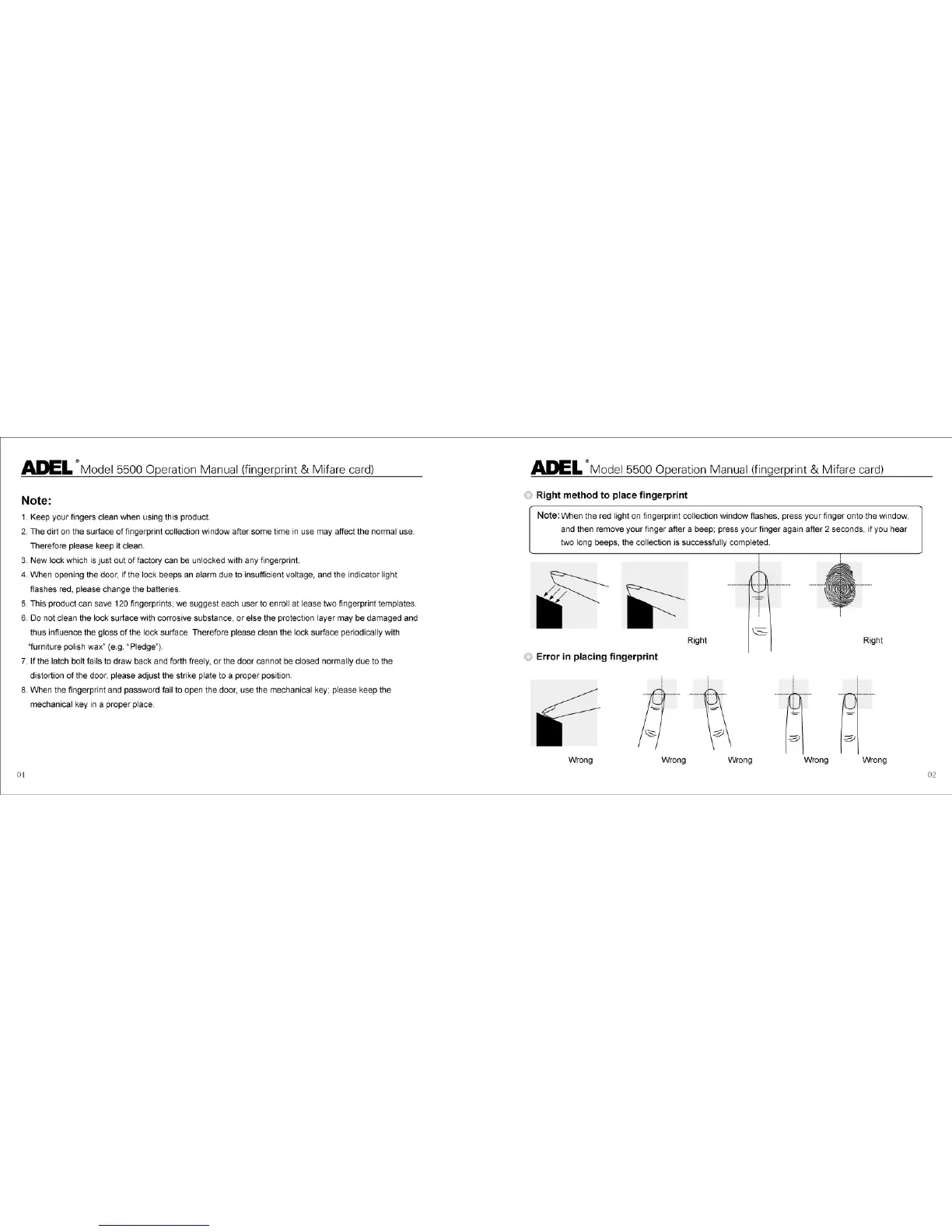 Adel 5500 - Right Method to Place Fingerprint; Error in Placing Fingerprint