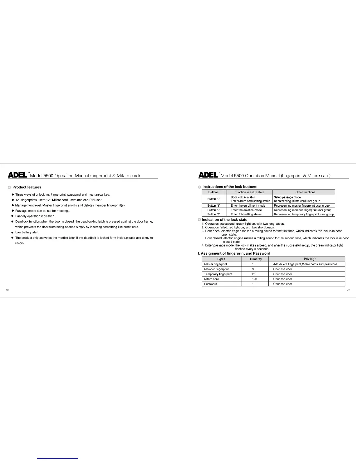 Adel 5500 - Assignment of fingerprint and password; Types