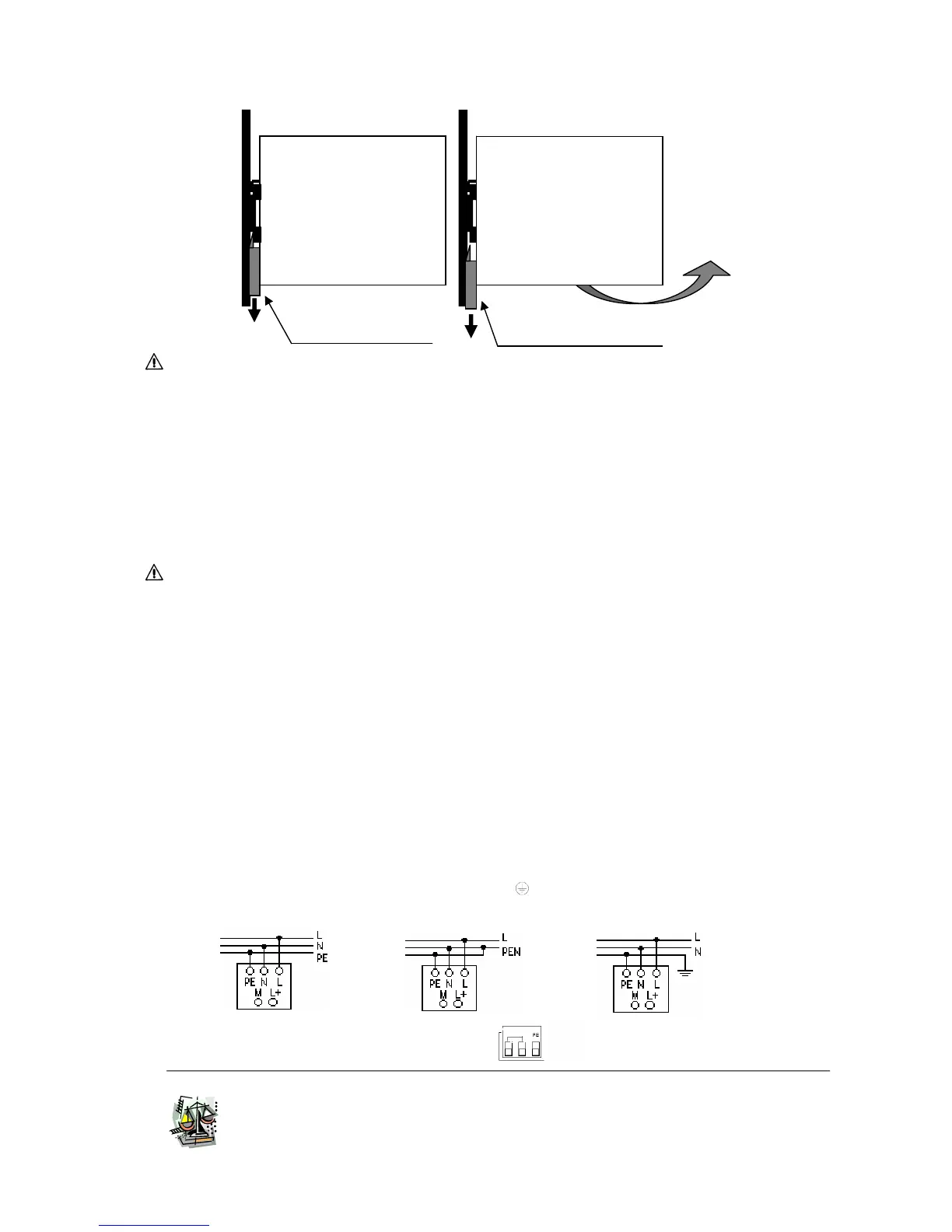 Input: The input connection is made by the screw connections L, N, PE