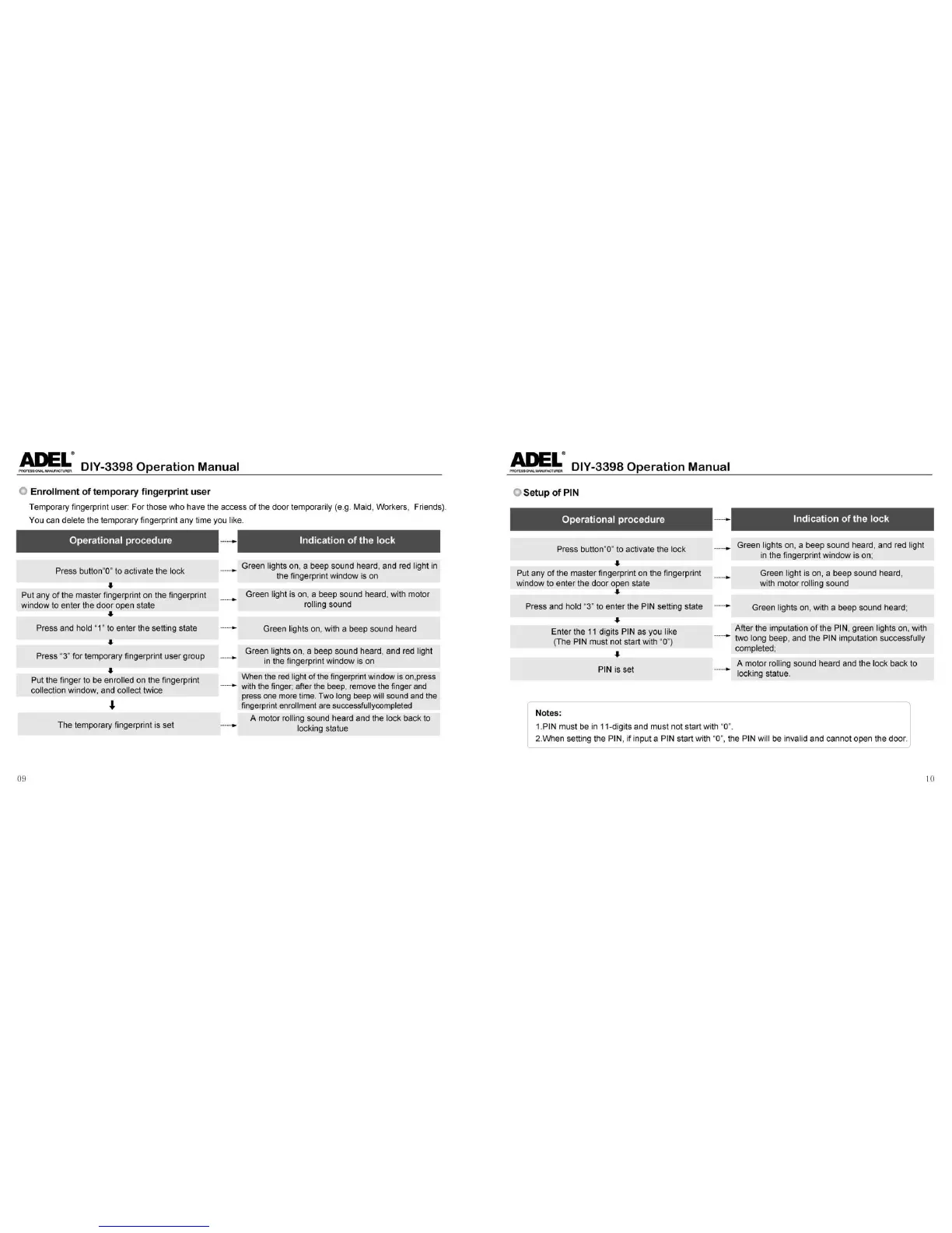 Adel DIY-3398 - Initialization of the Door Lock; Setup of PIN