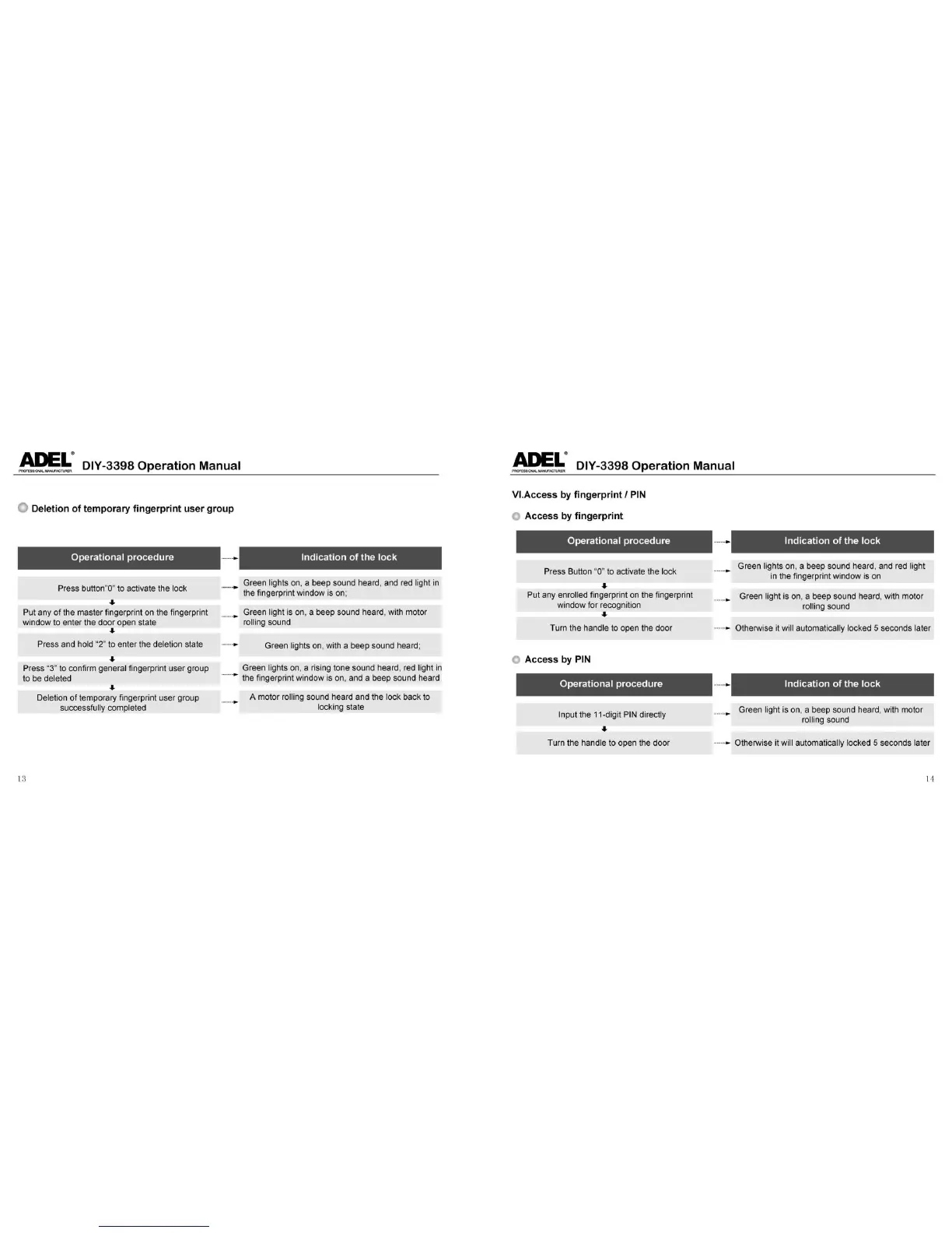 Adel DIY-3398 - Access by Fingerprint; PIN; Access by Fingerprint; Access by PIN