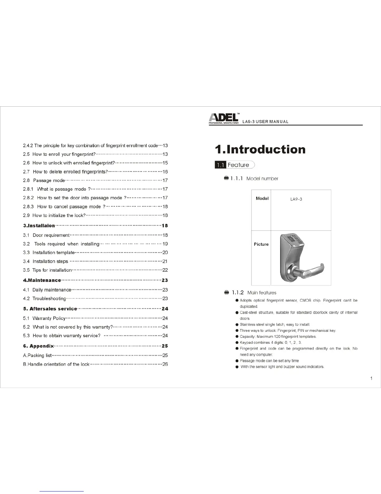 Adel LA9-3 - How to enroll your fingerprint; How to unlock with enrolled fingerprint; How to delete enrolled fingerprints; Passage mode