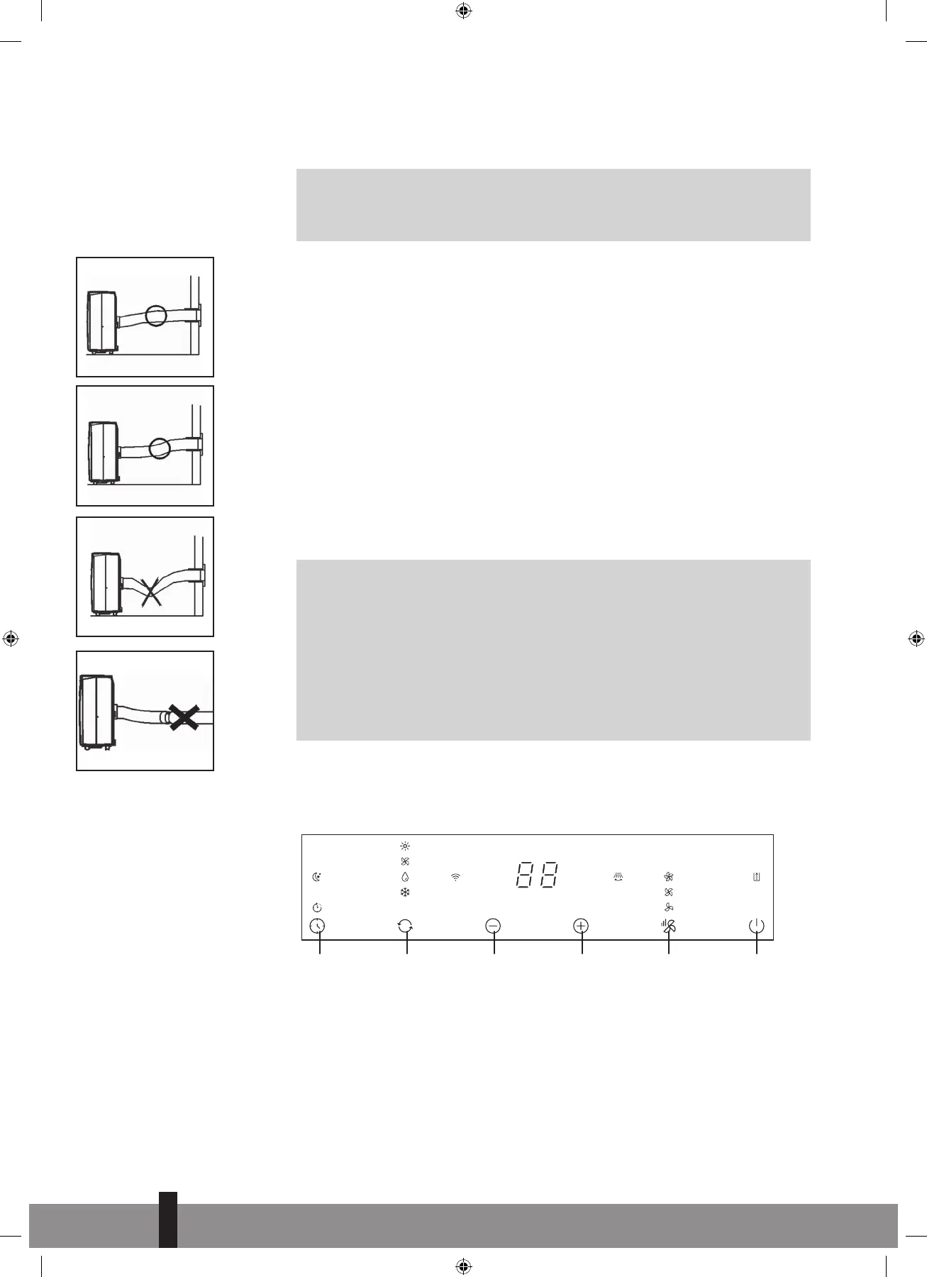 to overheating of the air conditioner. Take care to prevent any bow or