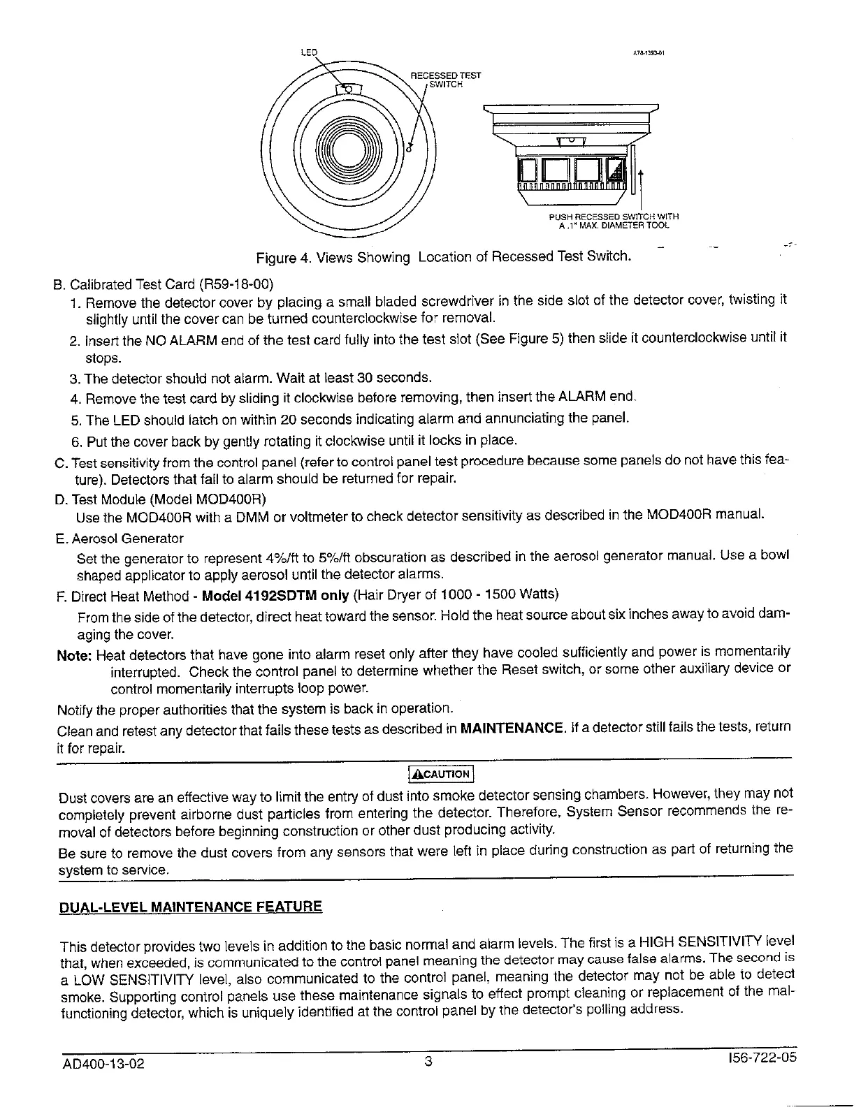 completely prevent airborne dust particles from entering the detector. Therefore, System Sensor recommends the re-