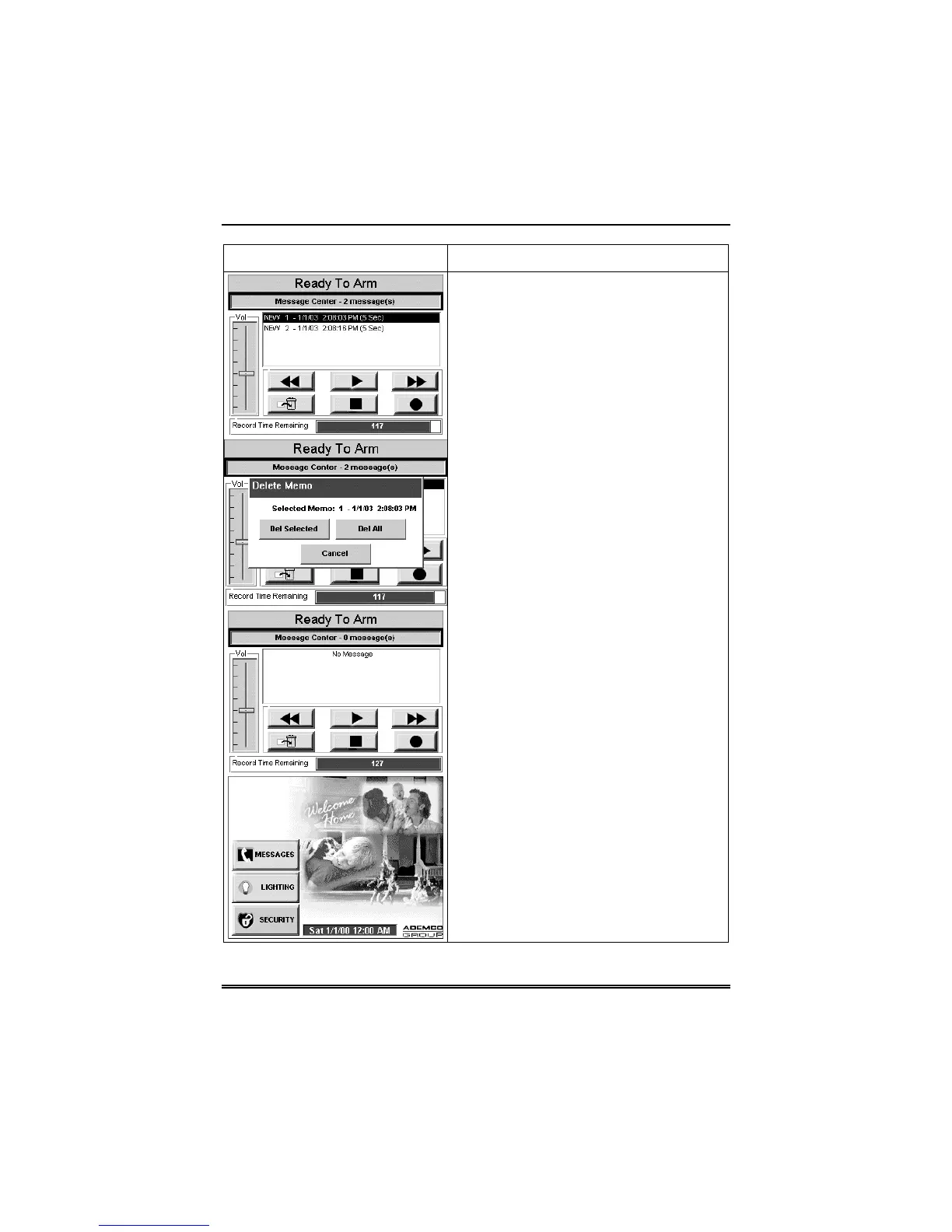 “Message Center” screen without deleting