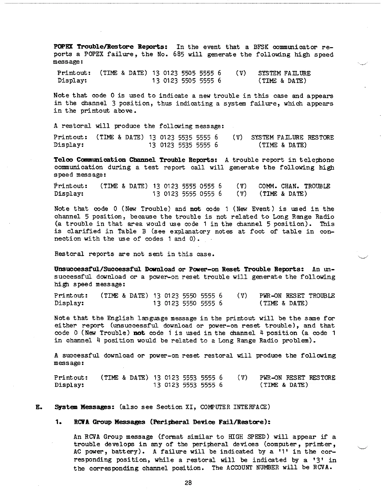 (a trouble in that area wo~d use code 1 in the channel 5 position). This