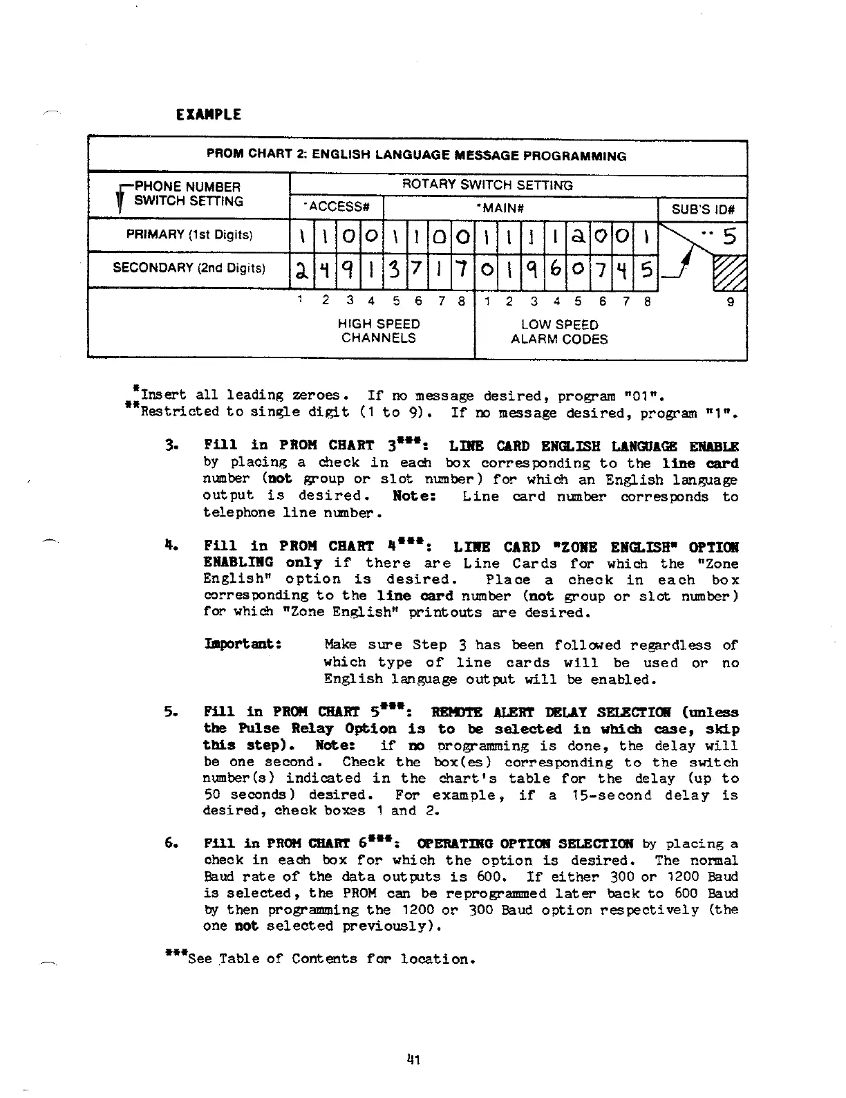 ●*Restrictedto singe di@t (1 to 9). If m message desired, progr= “1”.