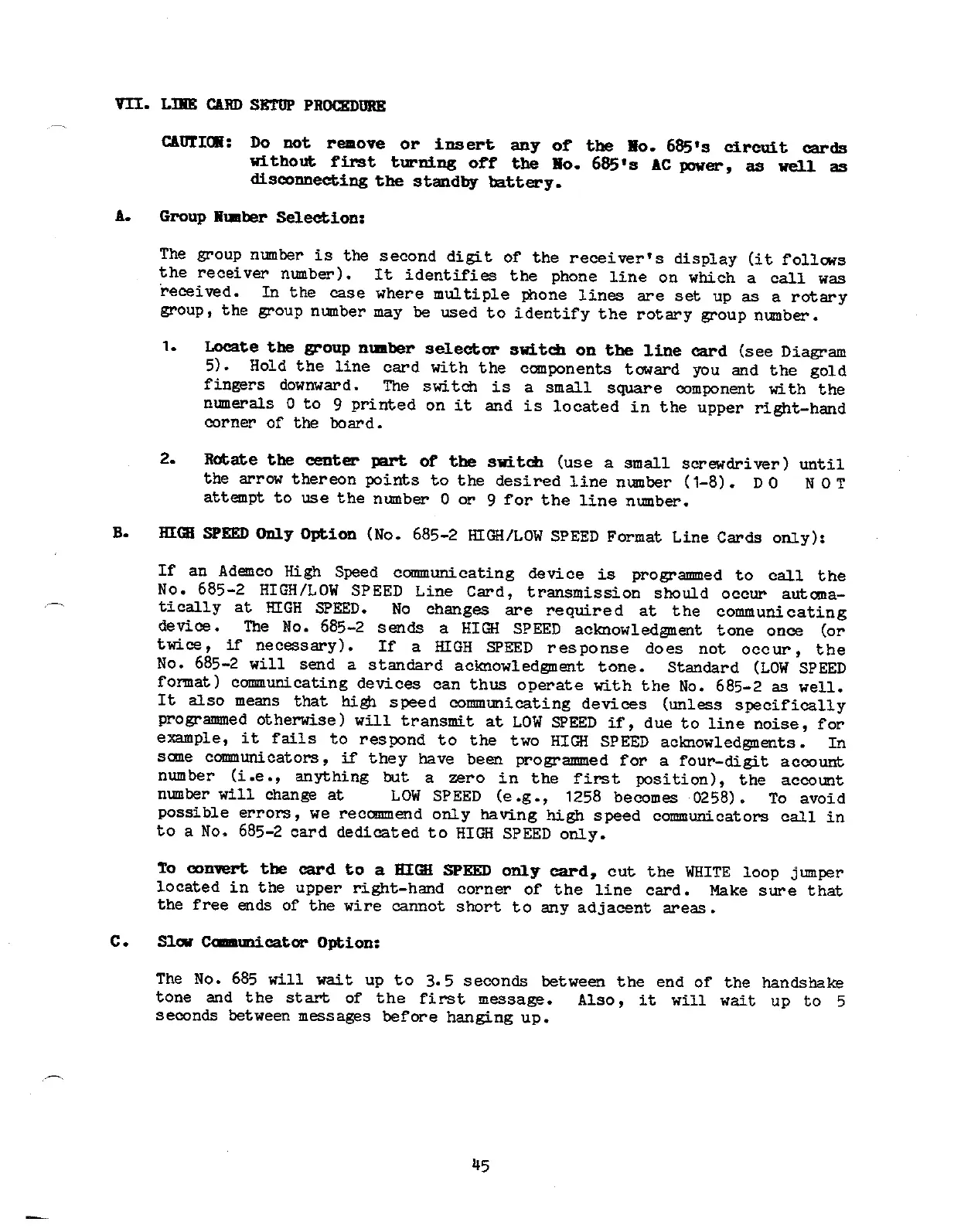 No. 685-2 HIGH/LOW SPEED Line Card,