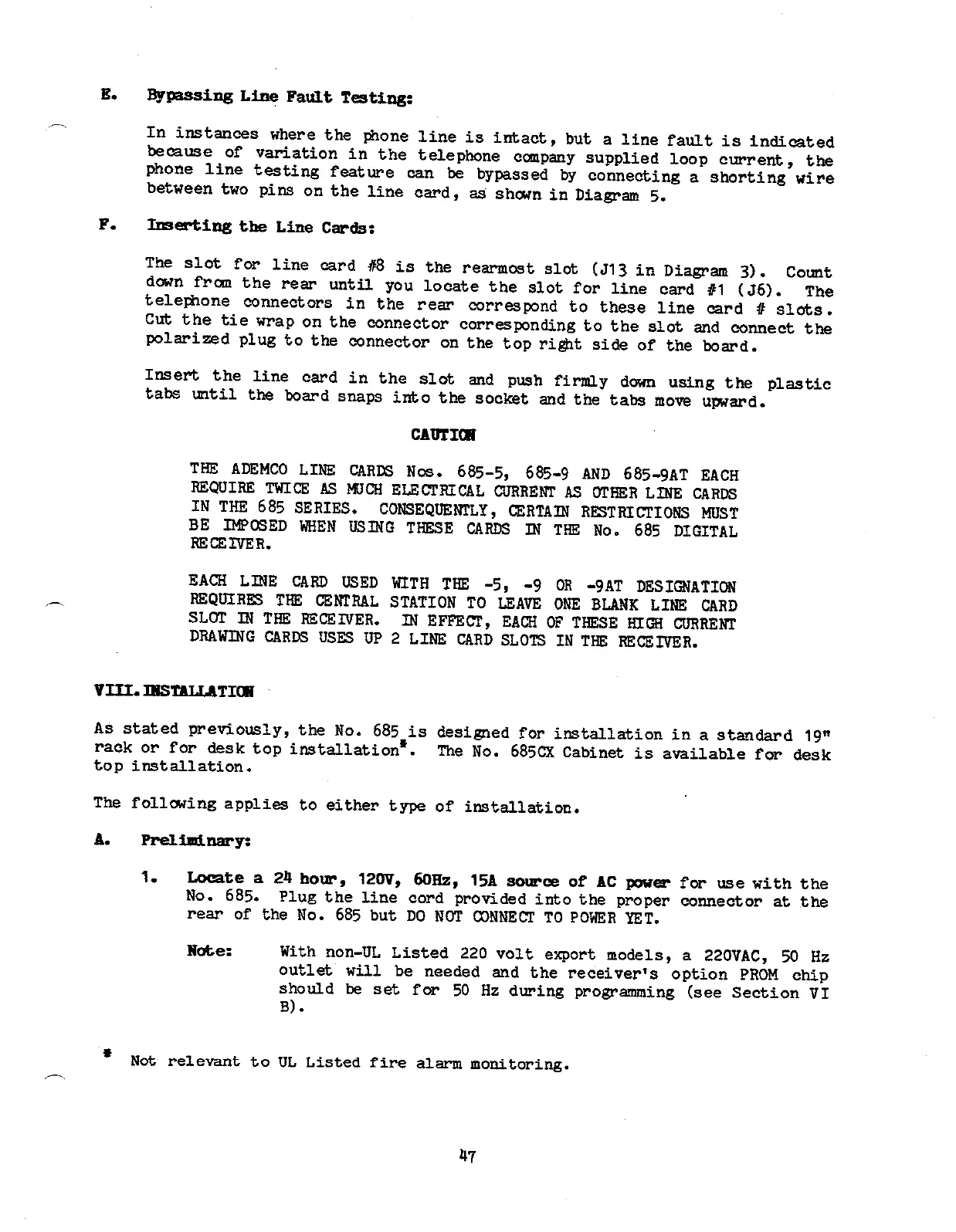 ā Not rele~t to UL Listed fire alarm monitoring.
