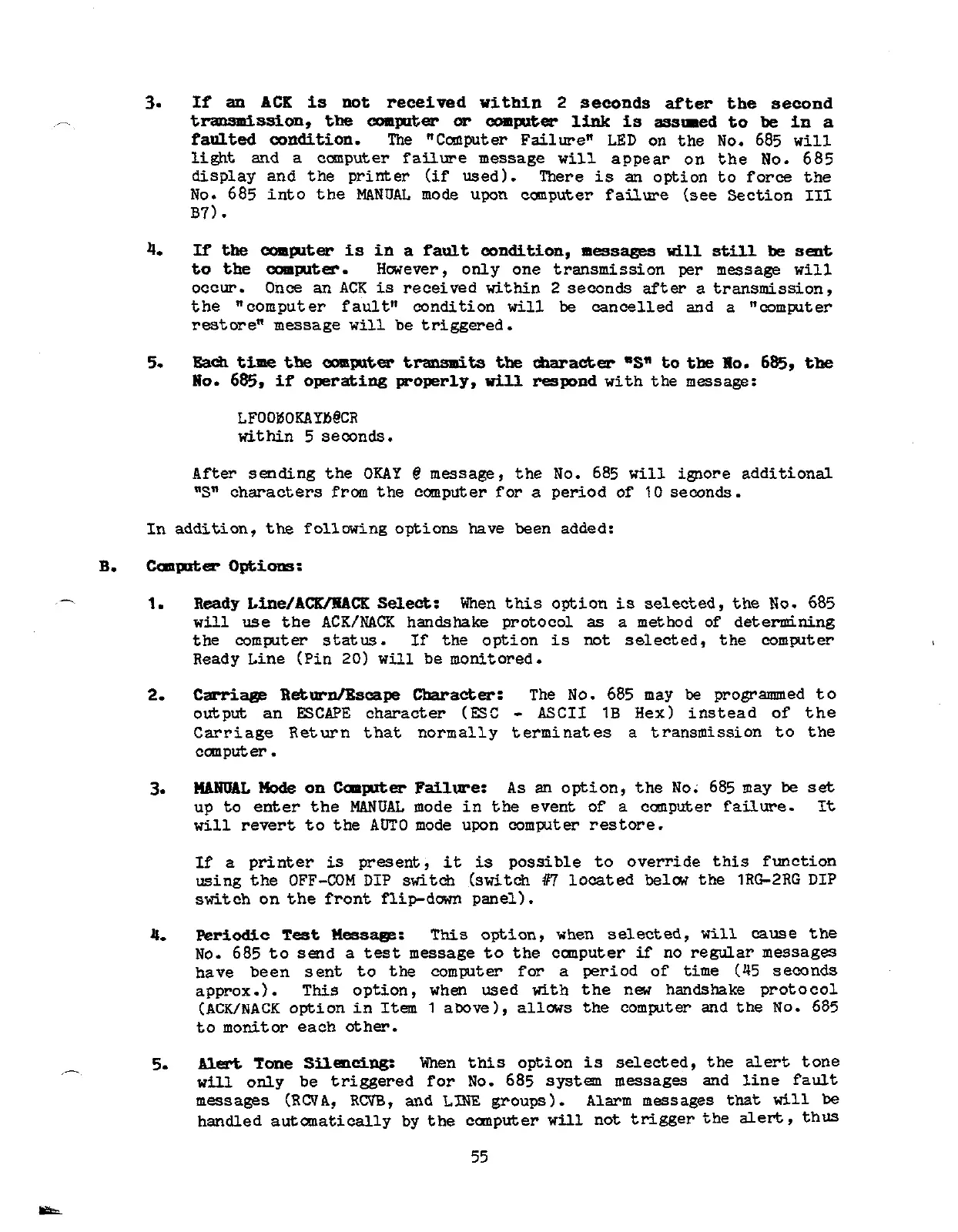 (ACUNACK o~ion in It= 1 a~ve ), allms the cOmWtw ~d the No. 685