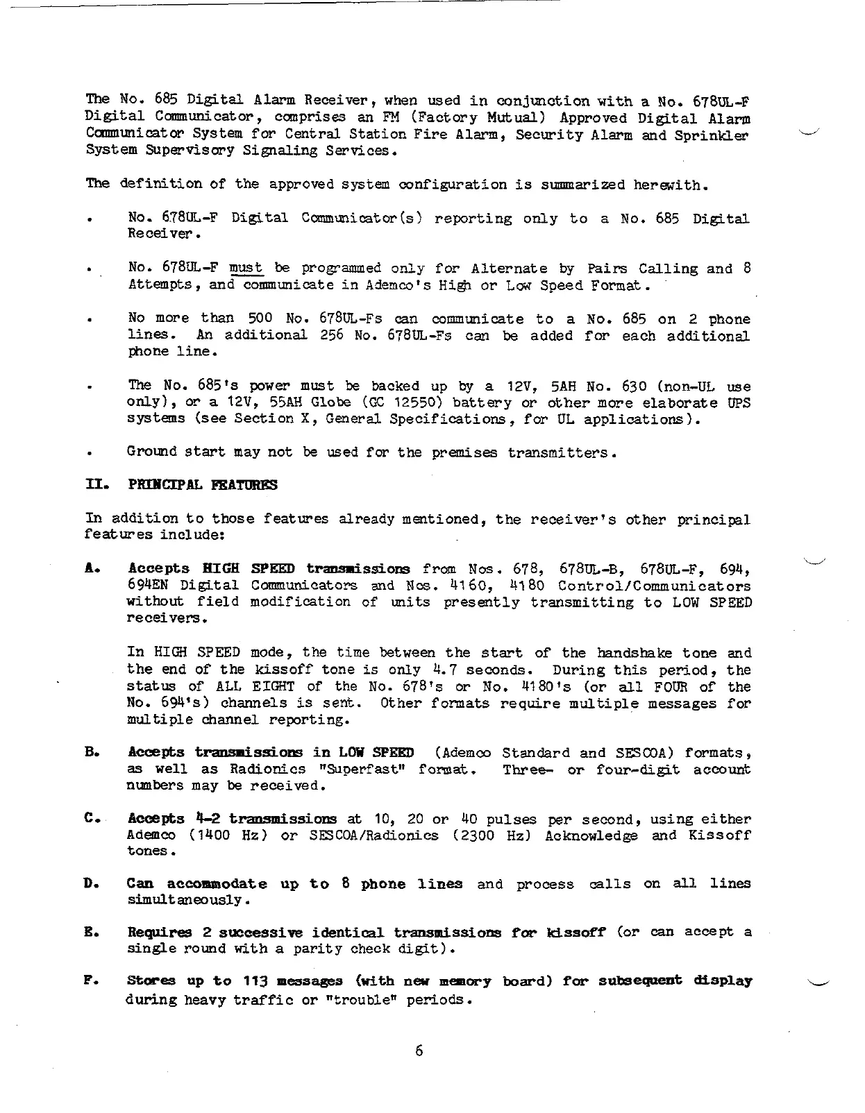 The No. 685 Digit~ Alarm Receiver,when used in injunction with a No. 678UL-F