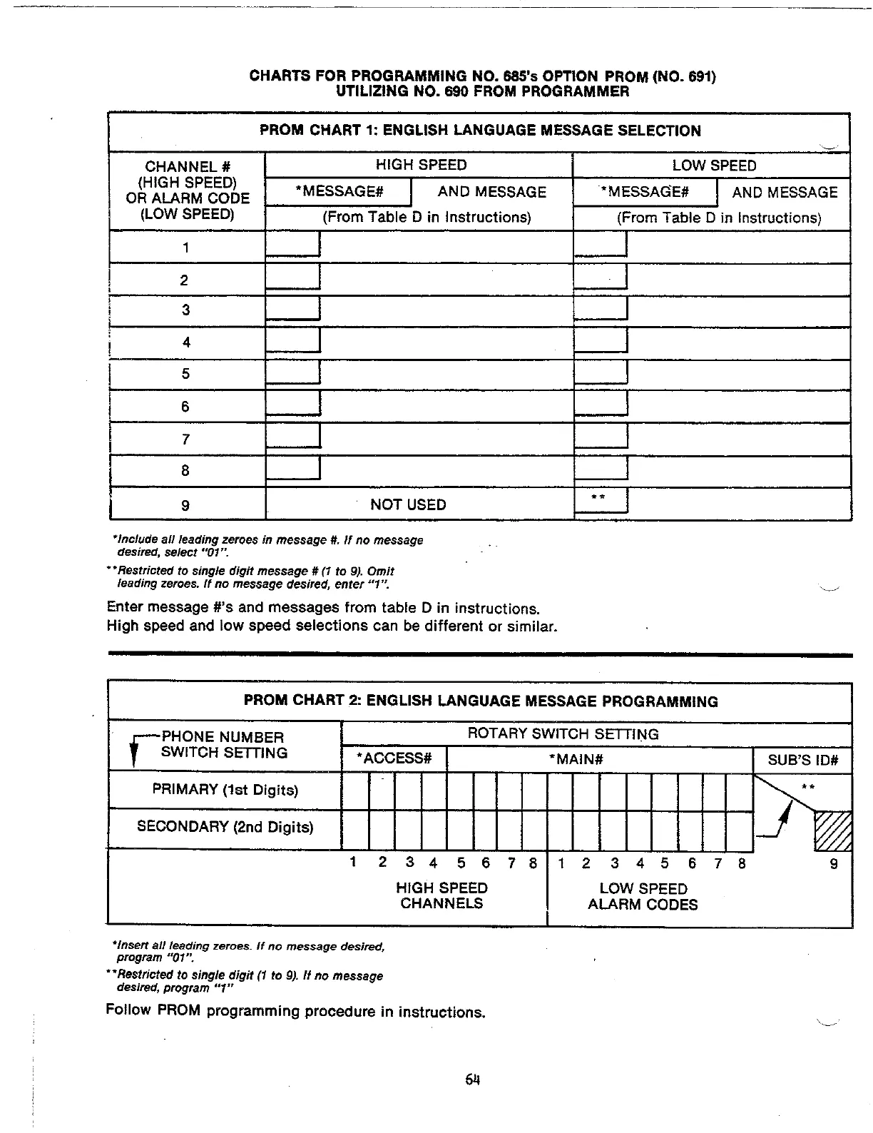 CHARTS FOR PROGRAMMING NO. 665’sOPTION PROM (NO. 691)