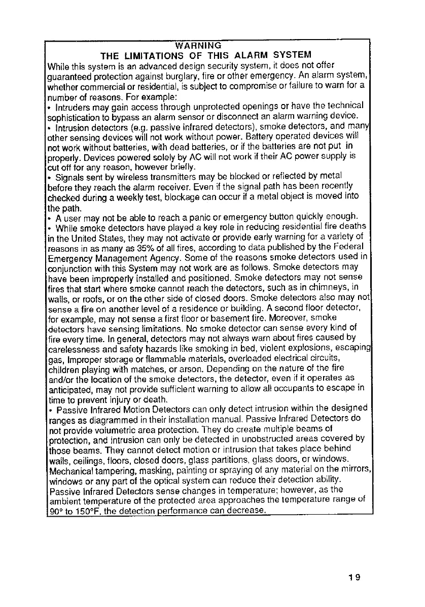 THE LIMITATIONS OF THIS ALARM SYSTEM