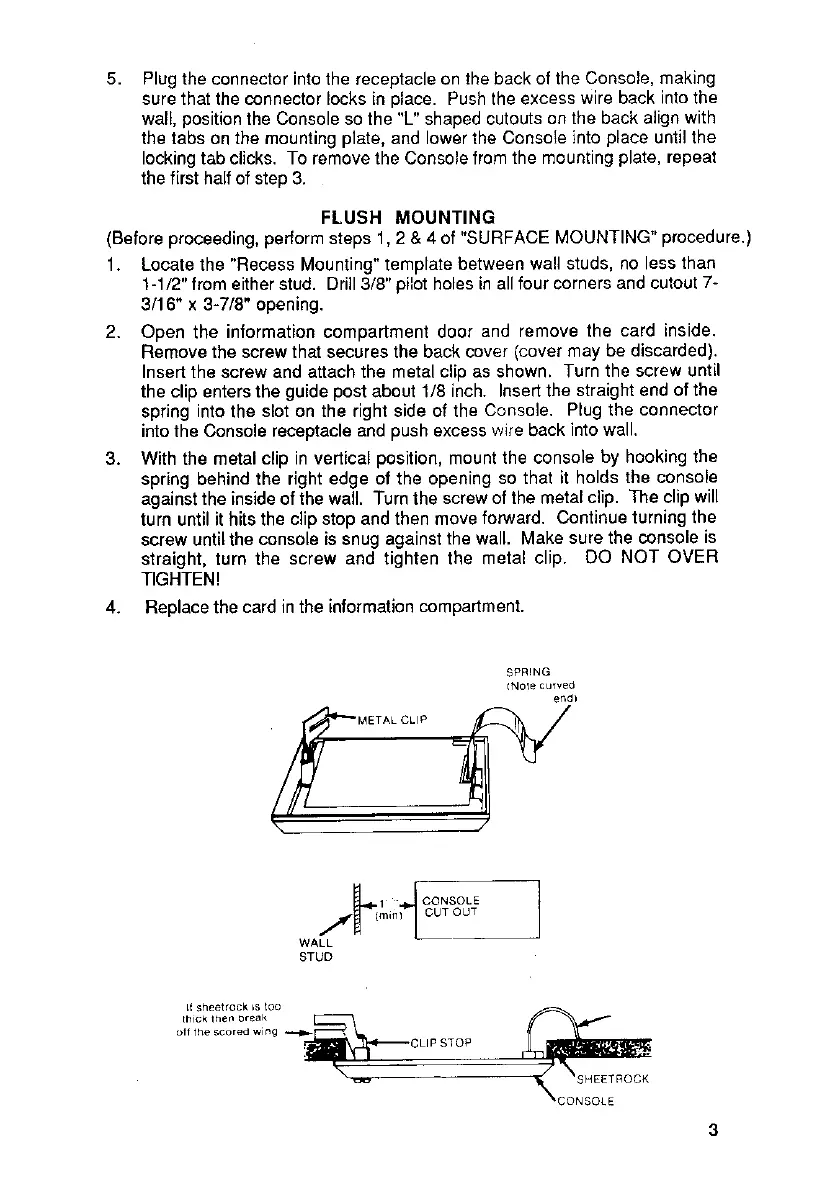 into the Console receptacle and push excess vjire back into wall.