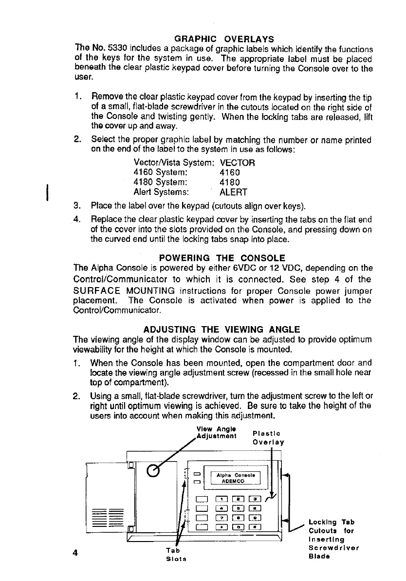 The Alpha Console is ~wered by either 6VDC or 12 VDC, depending on the