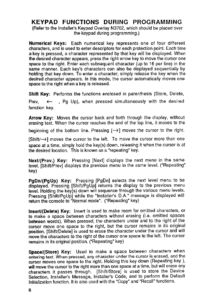 (Refer to the Installer’s Keypad Overlay N3702, which should be placed over