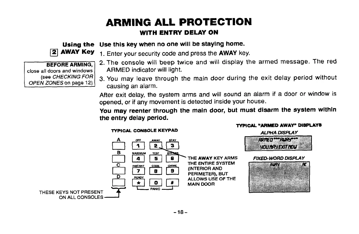 2. The console wili beep twice and will disp~ay the armed message. The red