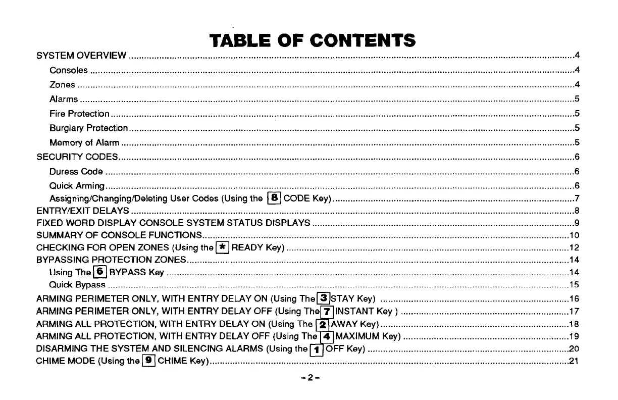 ARMING ALL PROTECTION, WITH ENTRY DELAY ON (Using The 2 AWAY Key) ..........................................................................l8