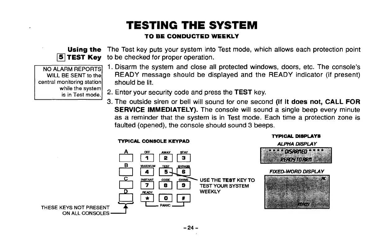 The Test key puts your system into Test mode, which allows each protection point