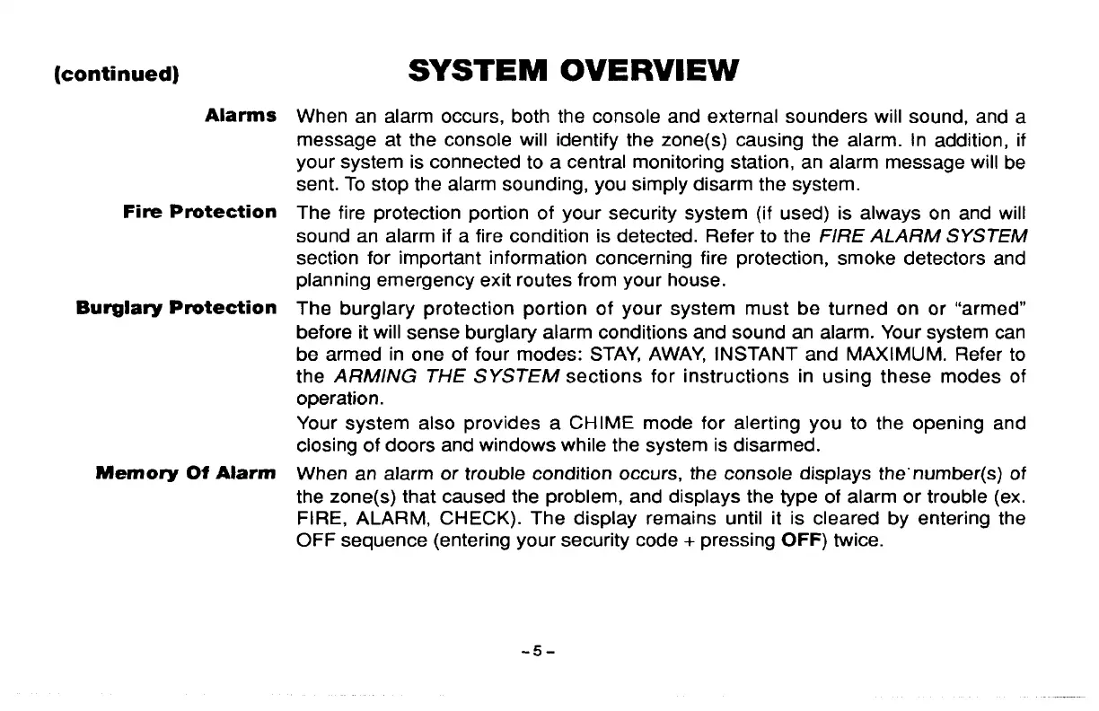 Fire Protection The fire protection portion of your security system (if used) is always on and will