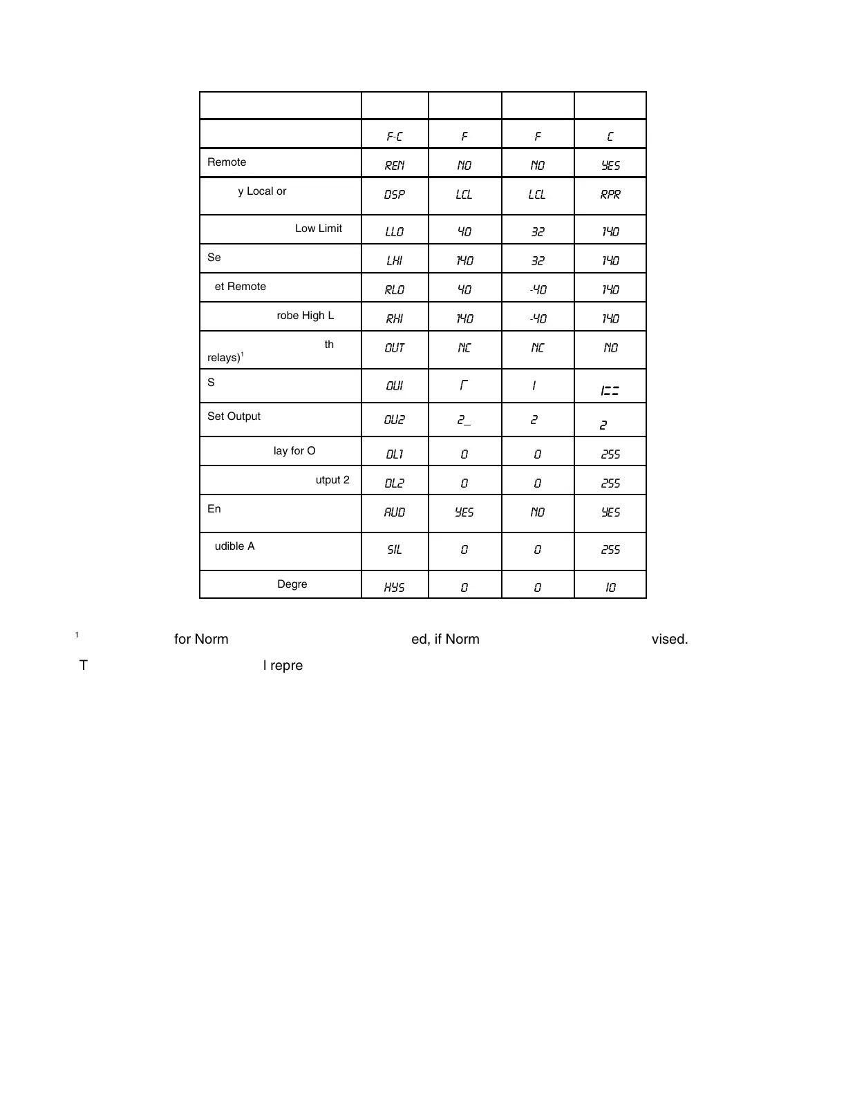 High/Low limits shown in table are degrees Fahrenheit. Equivalent Centigrade temperatures apply when
