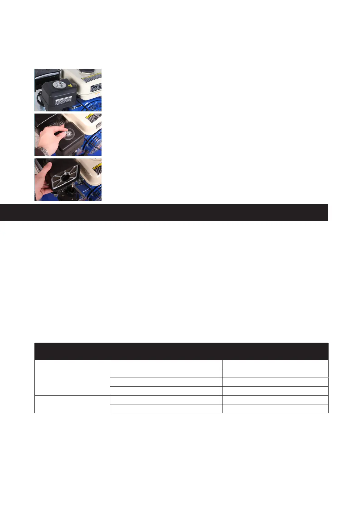 WARNING: DO NOT USE INFLAMMABLE SOLVENTS OR PETROL TO CLEAN THE AIR FILTER
