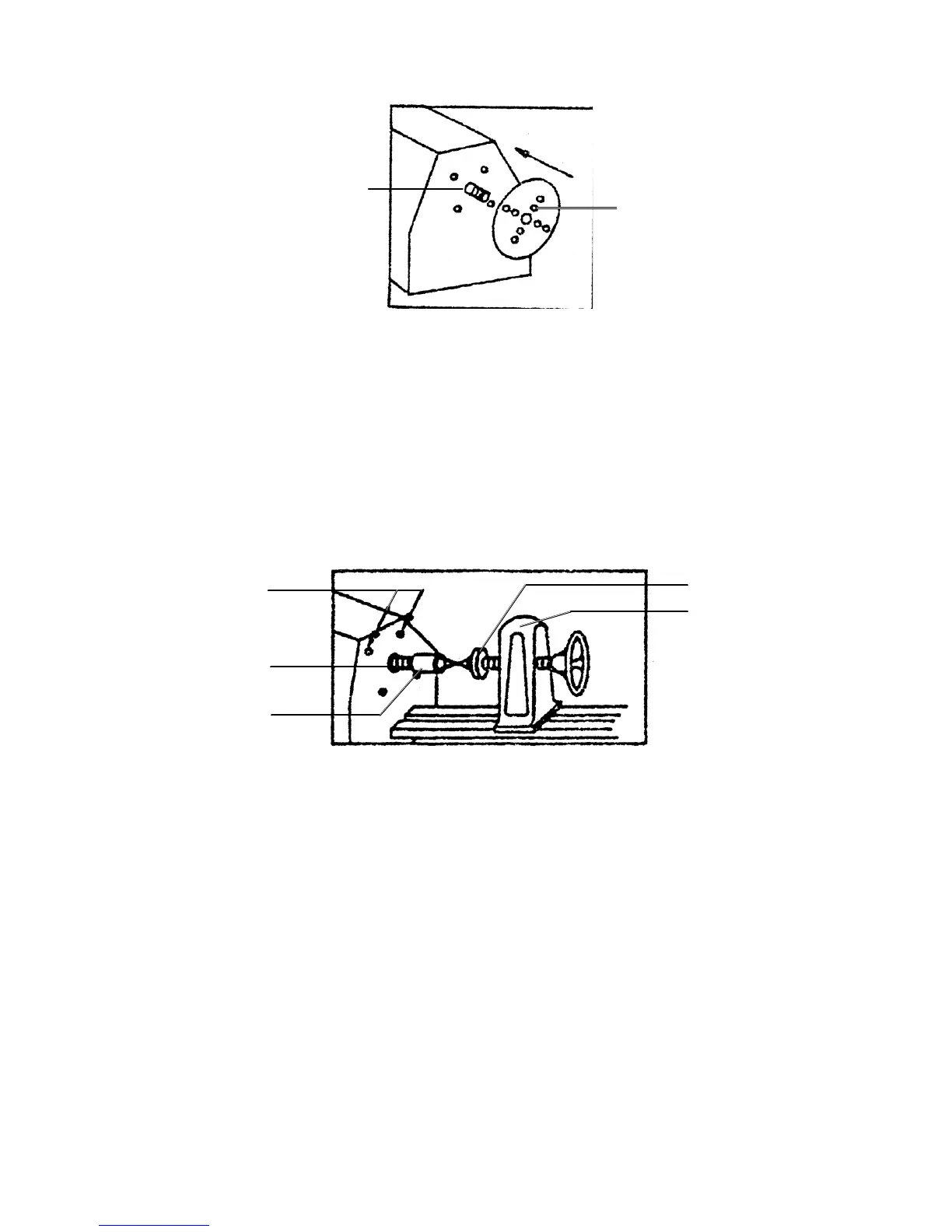 4. Swing the Main Shaft forward so the Lathe Tip (28) and the Tip (37) are in line. Then