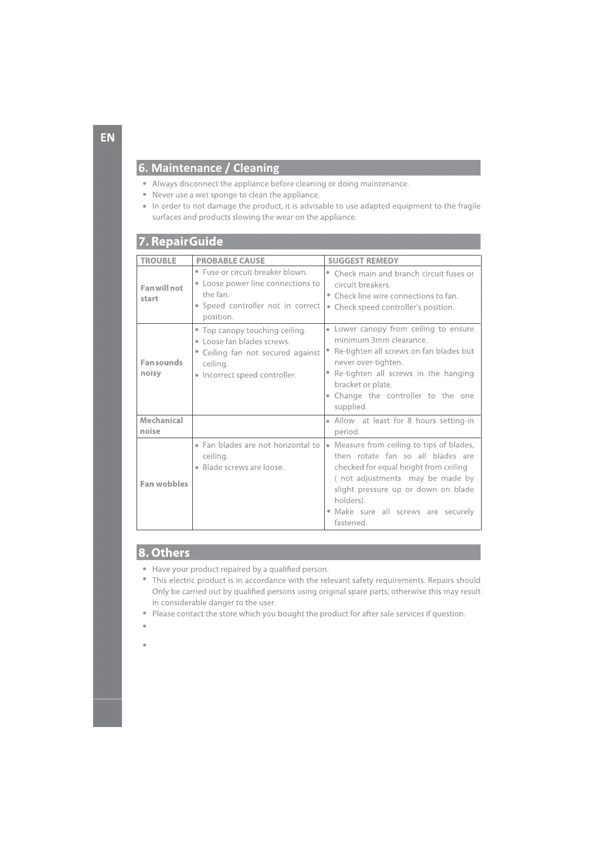 ADEO Services NT56301 - Maintenance and Cleaning; Troubleshooting and Repair; Additional Information and Warranty