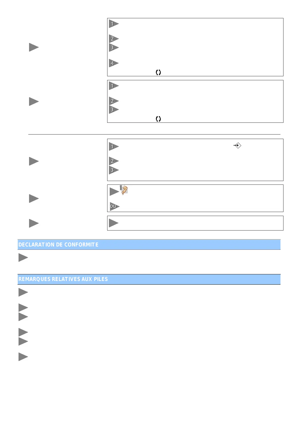 standard carbone-zinc ou rechargeables nickel-cadmium). Ne pas mélanger piles neuves et usagées.