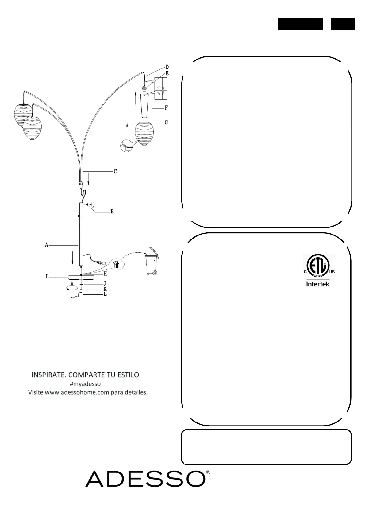 4. Enrosque la bombilla (no incluida) en la boquilla (E).