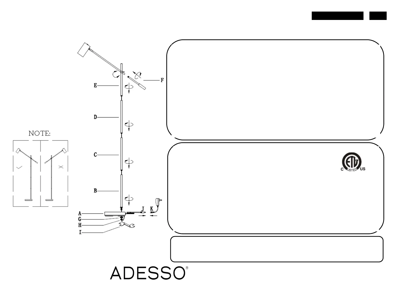 Nota: la lámpara debe mirar hacia adelante, con el cable que sale de la parte posterior