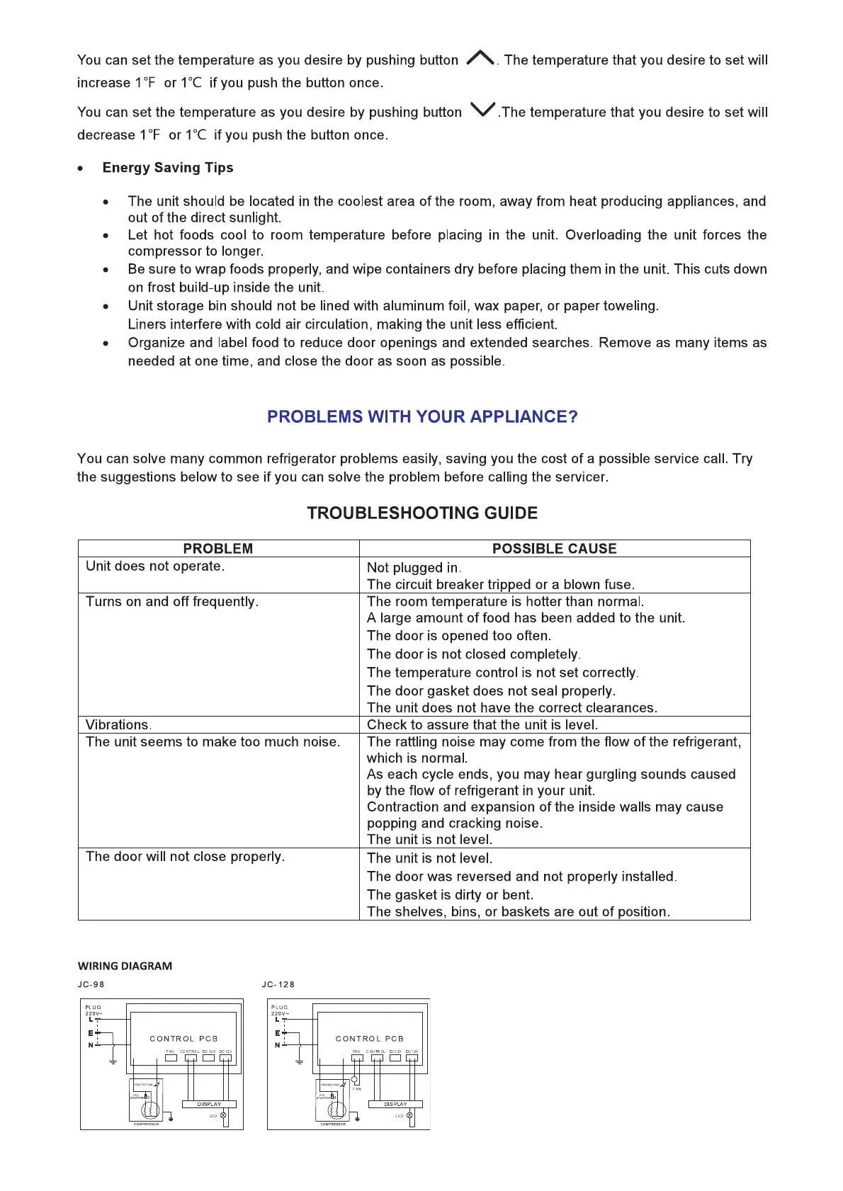 Adexa JC-98 - Energy Saving Tips; Troubleshooting; Troubleshooting Guide
