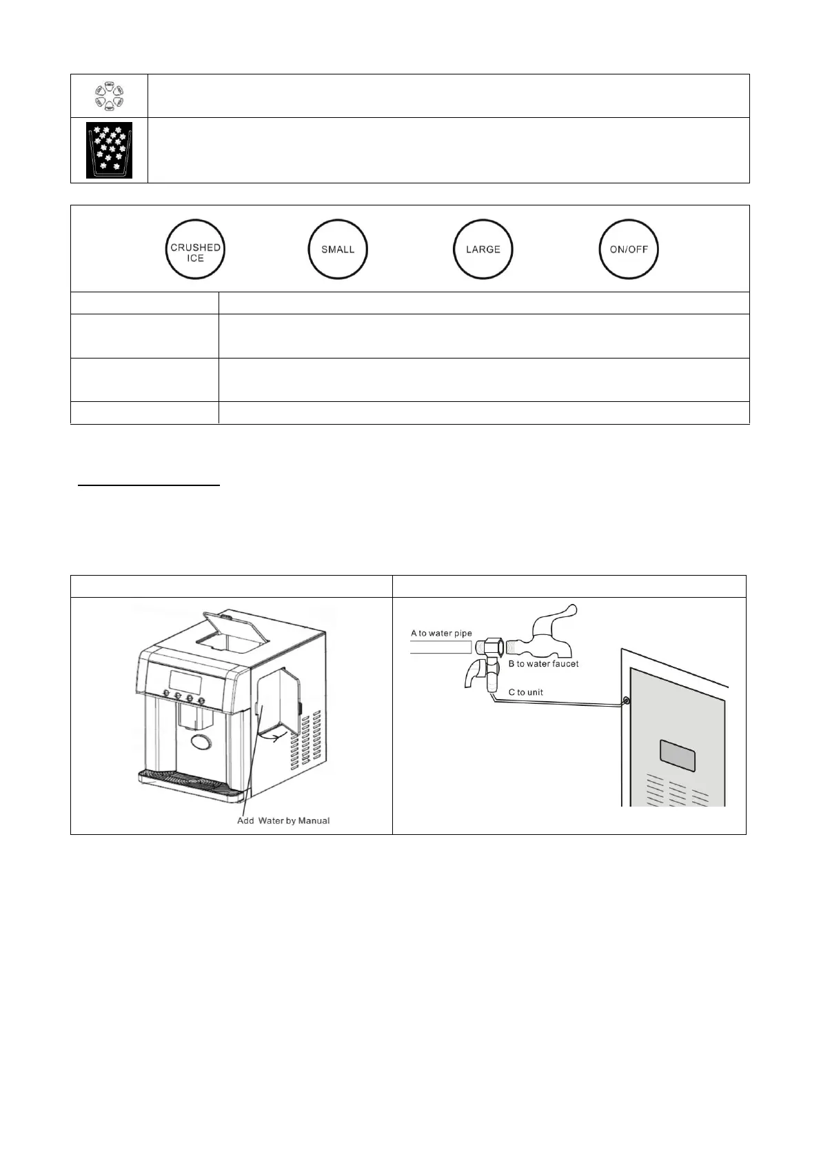 Select the button SMALL,LARGE to start the ice making function you may need