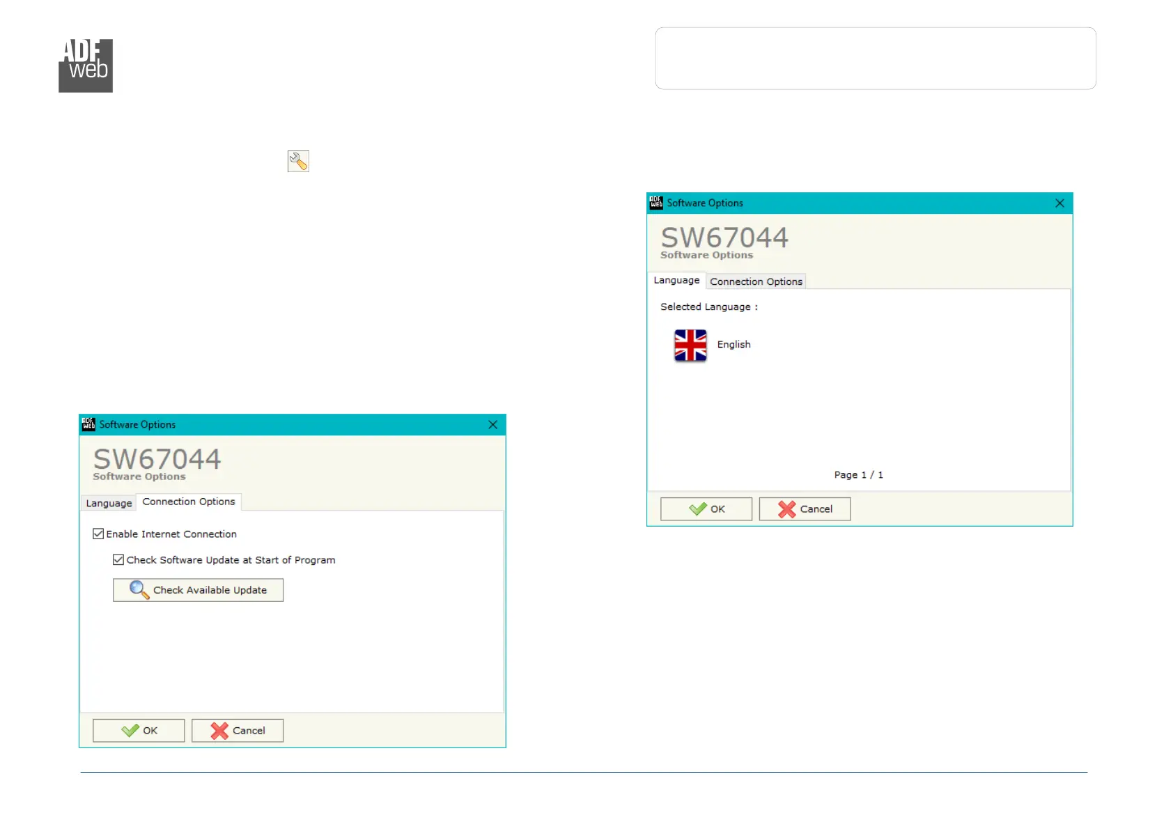 By pressing the “Settings” ( ) button there is the possibility to change the language of the software and check the updatings for the