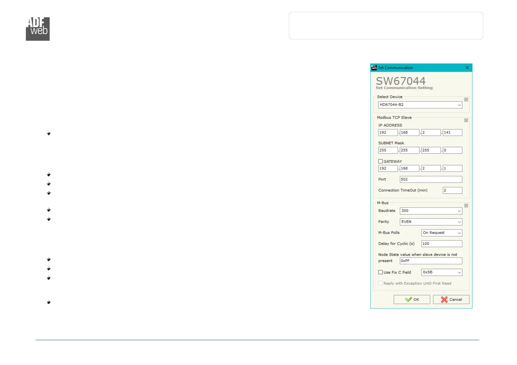 By Pressing the “Set Communication” button from the main window for SW67044 (Fig. 2) the window