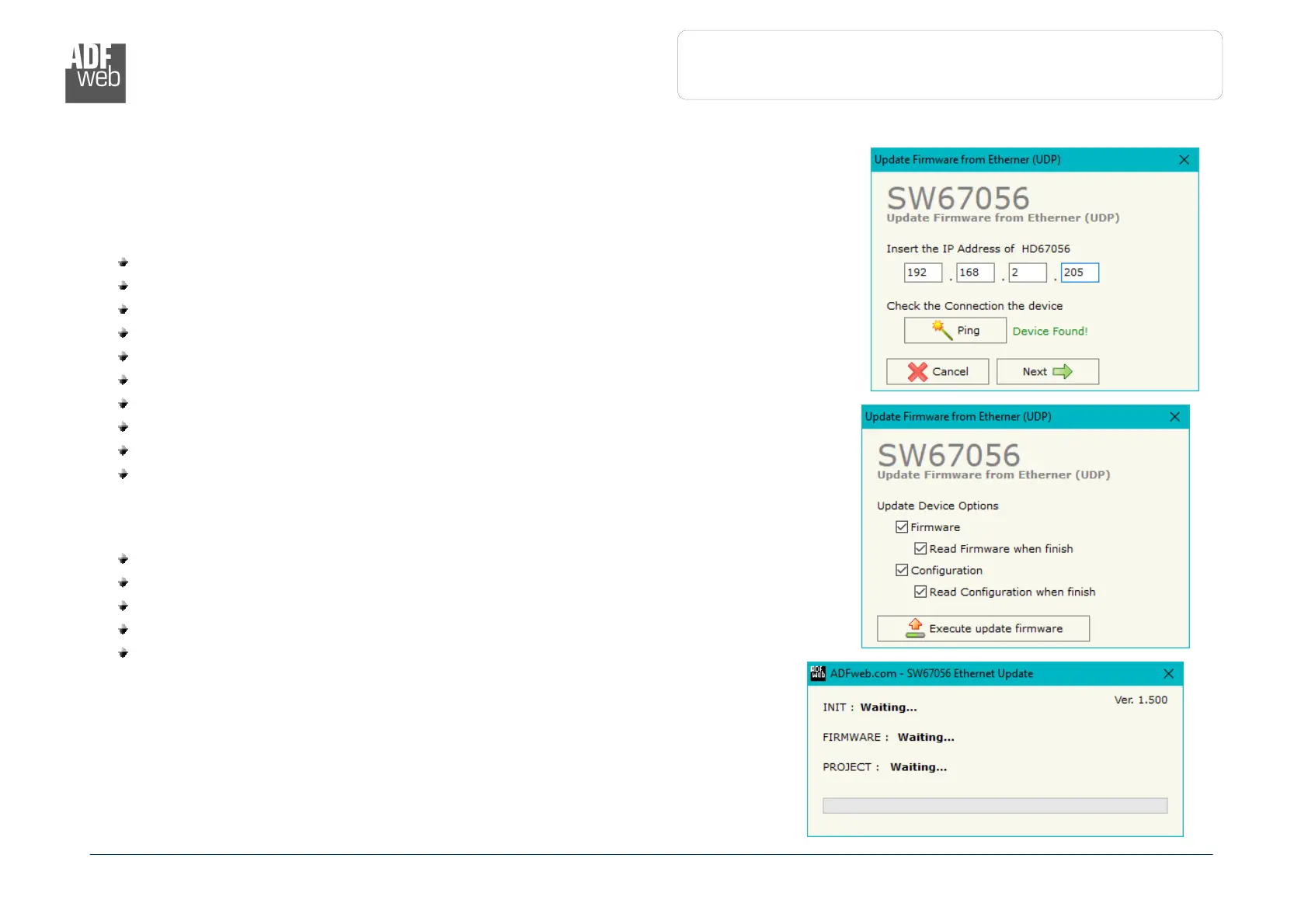 device; and also the Firmware, if necessary. This by using the Ethernet port.